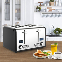 Torradeira Elétrica de 4 Fatias com Slot Extra Largo, 5 Níveis de Douramento, Automática, Com Bandeja Removível para Migalhas, para Uso Doméstico e em Hotéis